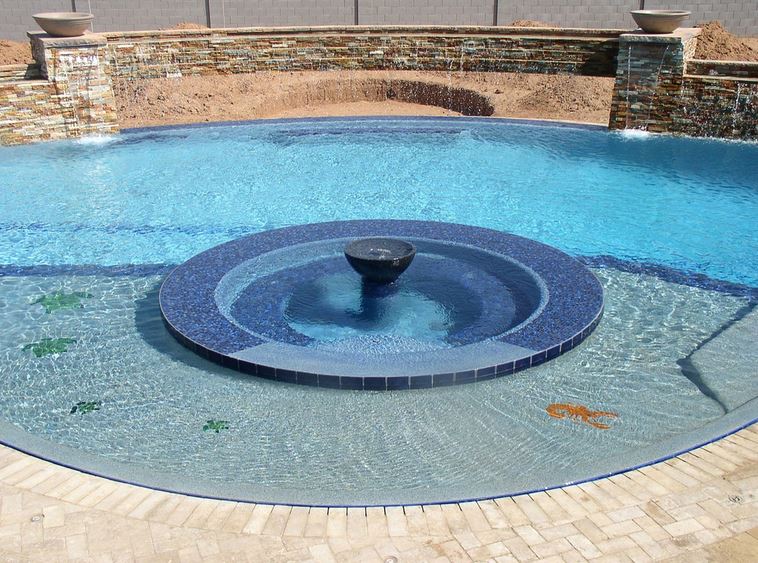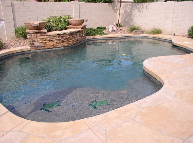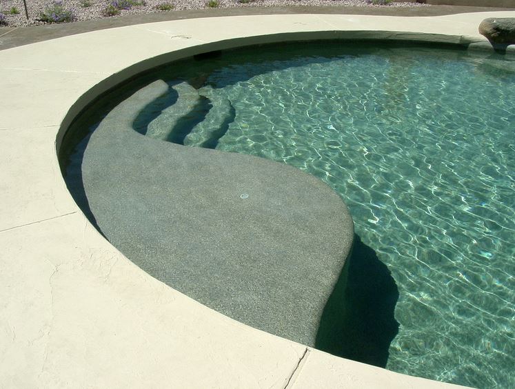 Are you tired of plunging into your pool with no way of making the gentle descent into its cold depths? Sometimes ladders and steep drop offs are not comfortable ways to enter the sometimes frigid waters and leaving the warmth of Arizona air. True Blue Pools has just the solution for you, with our beautifully designed Baja beach steps. Sink gradually into your pool with our wide array of step designs and take refuge from the stifling heat.